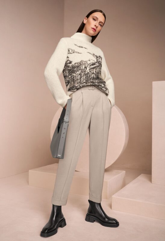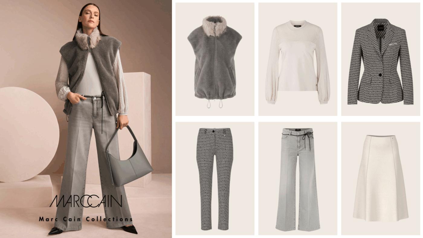 Marc Cain Collections, das Kernlabel des Unternehmens, mixt zeitgemäss attraktive Silhouetten mit spielerischen Details und prägt einen ausdrucksstarken Look – voller Lebendigkeit und lässiger Noblesse. Luxuriöse und hochwertige Materialien, starke Muster und offensive Farben kreieren einzigartige Statement Pieces, die feminine Eleganz und Selbstbewusstsein vereinen.